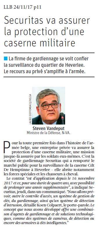 Une entreprise civile assure la protection d’une caserne militaire! (24/11/2017)